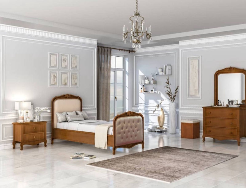 این سرویس خواب با طراحی کلاسیک منبتکاری شده و دستساز، ساخته شده از چوب راش گرجستان، نه تنها ظاهر فوقالعادهای دارد بلکه سالها دوام دارد و قابل استفاده است. ابعاد تخت بزرگتر در نظر گرفته شده تا کودک در طول رشد احساس راحتی کند.